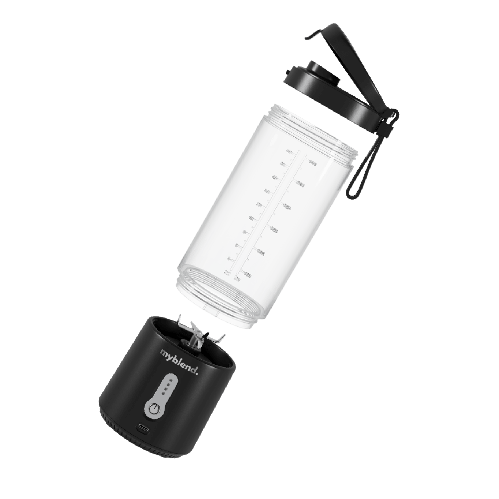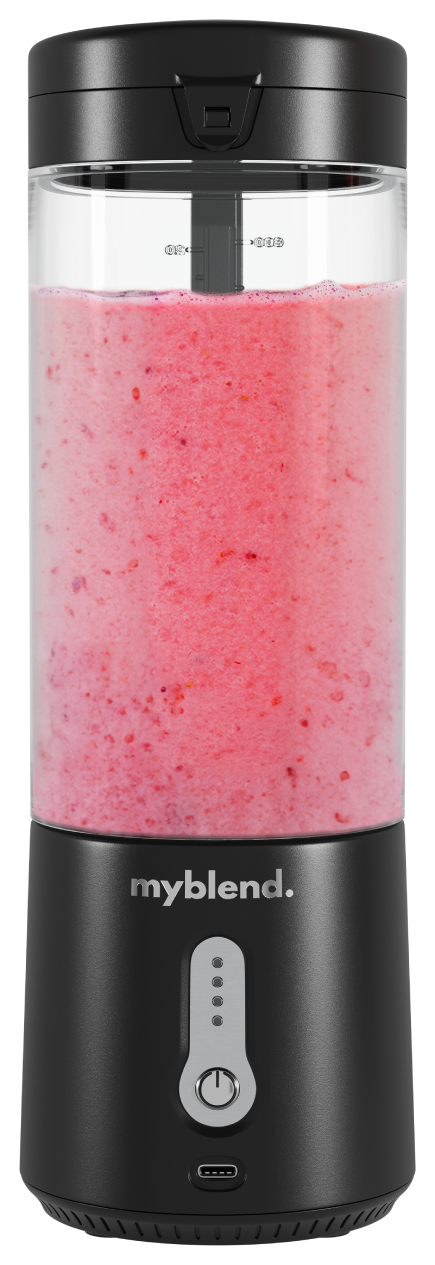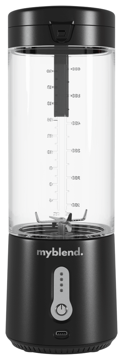 Flip your MyBlend upside down and make sure that the blades are completely free. Turn the blender on and slowly flip it back up again so that all ingredients hit the blades at full speed. Give it a gentle shake while blending.
