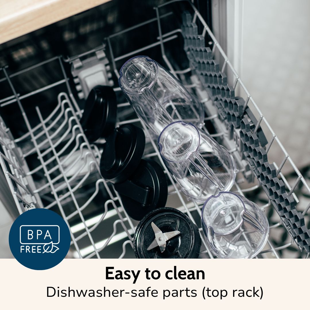 MyBlend Compact is quieter than most high-speed blenders, but like any powerful 500W motor, it makes some noise while blending - especially with frozen ingredients or nuts. The good news? Each blend takes less than a minute, so it won’t interrupt your day for long.